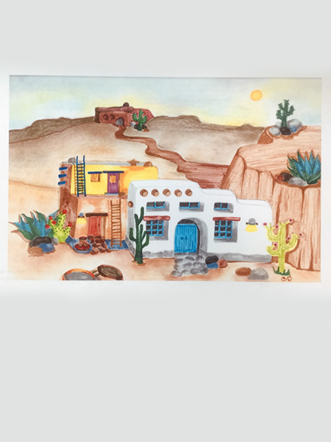 “Mexican Village”, acrylic on paper, 2018