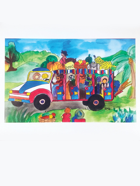 “Chiva/Bus Escalera”, watercolor on cotton paper, 2018