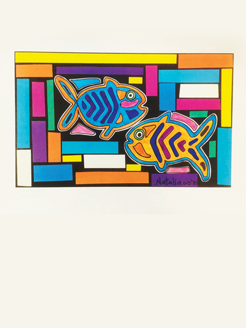 “Kuna/Guna Mola”, makers on paper and collage, 2018