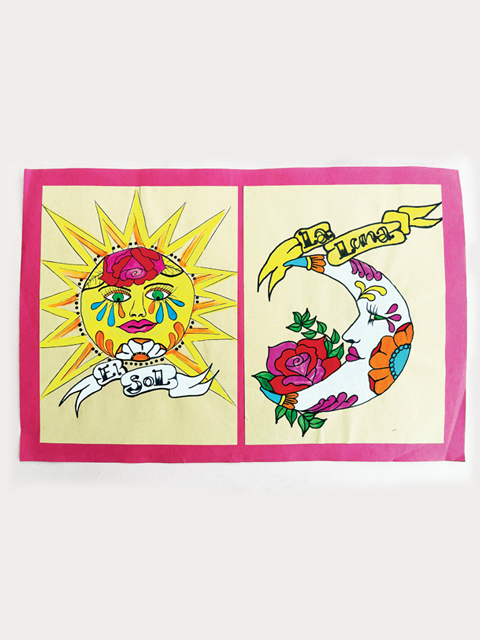 “Lotería Sol y Luna”, acrylic on paper, 2018