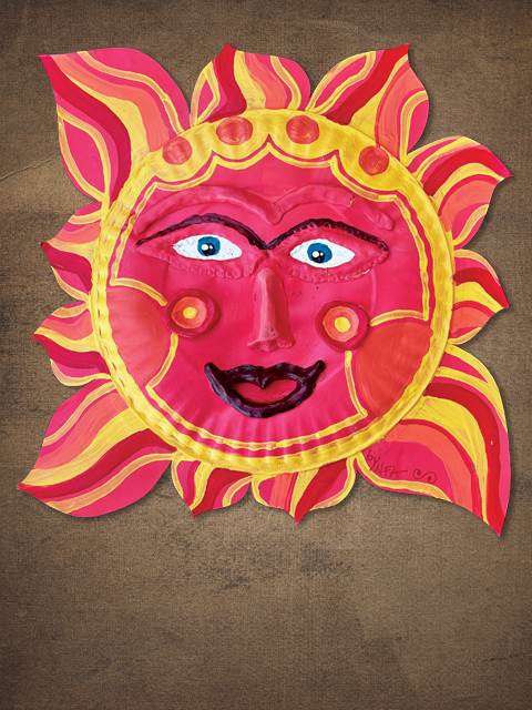 “Mexican Sun”, 3D paper-maché with acrylic paint, 2018
